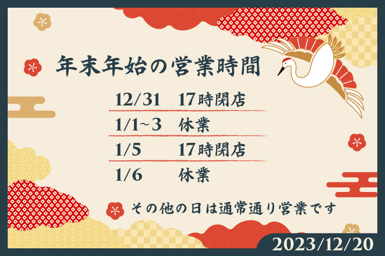 | 営業時間 | 7:30 ~ 23:00 年中無休(年末年始を除く) |